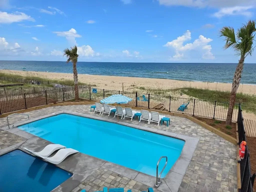 Bright & Colorful Gulf Front Beach Pool & Spa Home! This whimsically appointed airy 2BR / 2BA Beachfront cottage has a rare GULF FRONT pool with kiddie pool and 8+ person hot tub spa! Amazing sundeck for al fresco living including outdoor pool table and barbeque grill! Fun friendly open Kitchen, Living Room & Dining Room allows for maximum relaxation and entertaining! Both Bedrooms face the beach for amazing sunrise views complete with adjustable beds, retractable smart TVs, dressing area with lighted vanity mirror, double sinks and tub/showers.